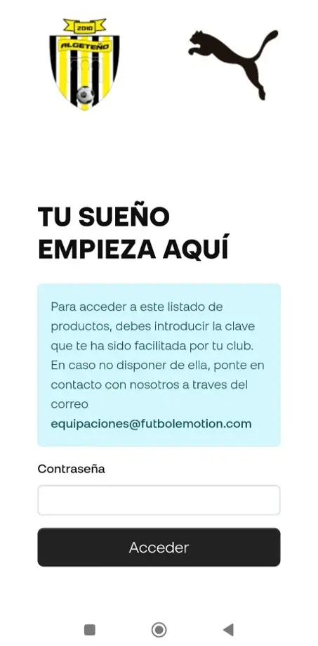 TIENDA OFICIAL - C.D. ALGETEÑO. El club te ofrece acceder a la tienda oficial del club a traves de FUTBOL EMOTION. Es muy facil, accede con el código que te ha facilitado el club y sigue los pasos.